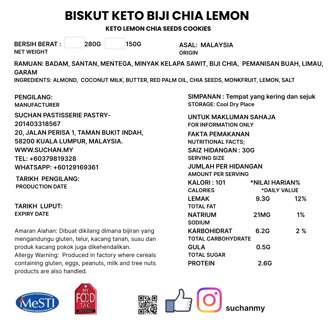 Tangy Lemon flavour with slight crunchy bites chia seeds and almond. Keep chilled. Uses golden Monkfruit sweetener