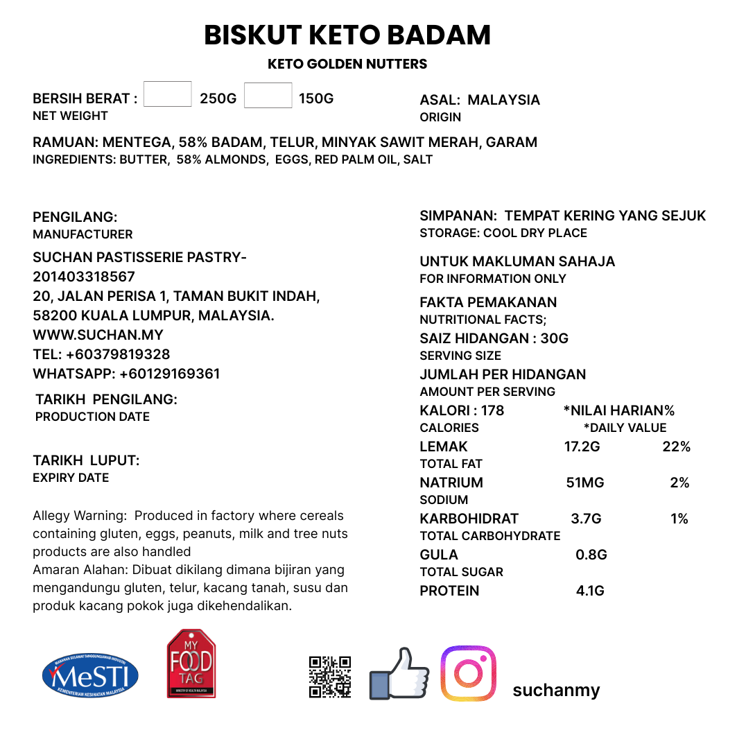 No Sugar, No Flour. Just natural flavour from the almonds and butter with a hint of salt.