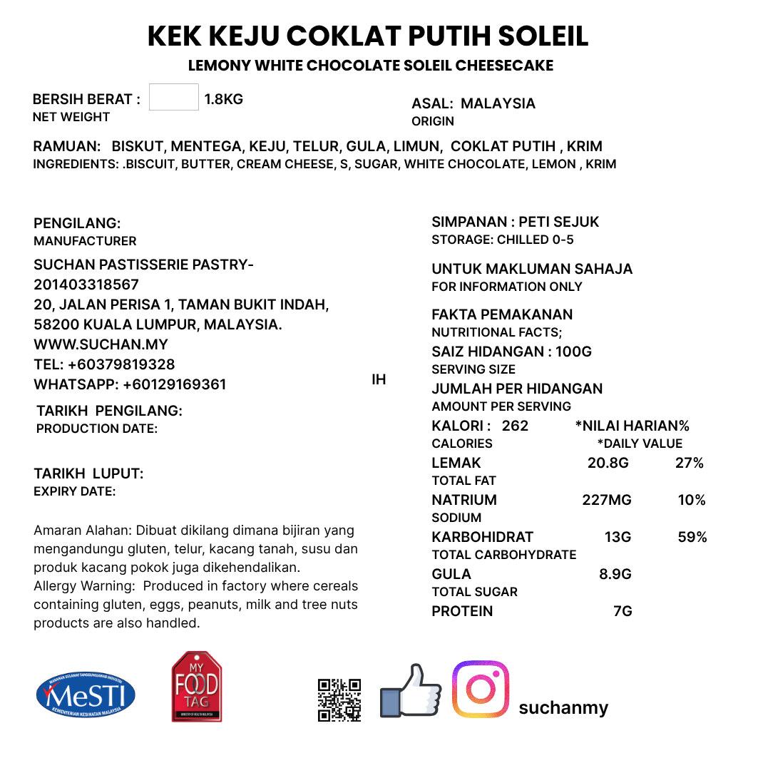 Lemony White Chocolate Soleil Cheesecake - Pre Order 3 Days Advance.
